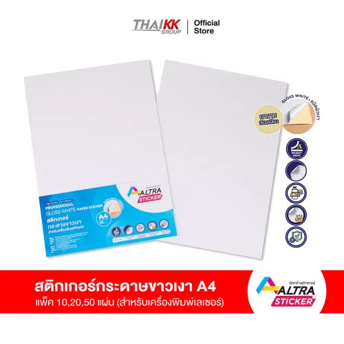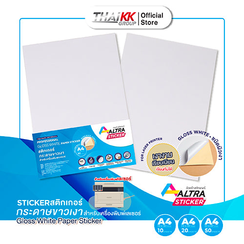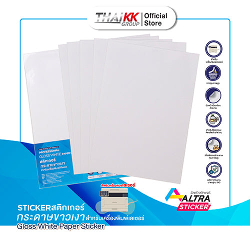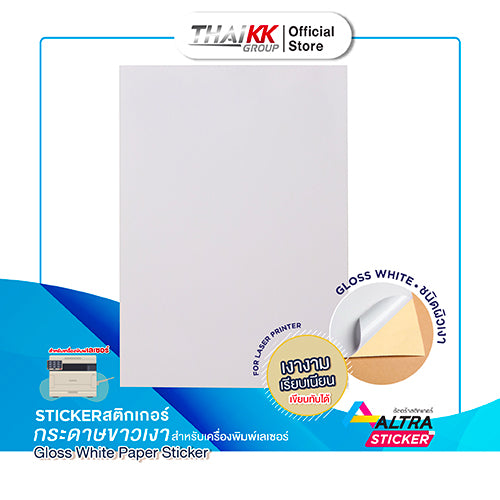 - สติกเกอร์กระดาษขาวเงา A4 Laser Glossy White (wood free) Paper Sticker ขนาด A4
