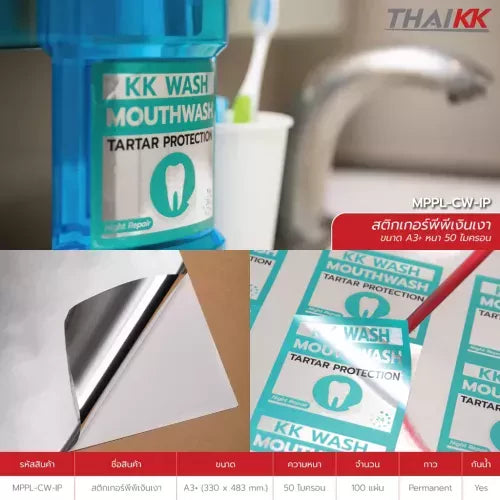 - สติกเกอร์เนื้อฟิล์มพีพีเงินเงาชนิดกันน้ำ